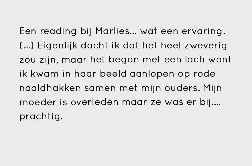Mijn naam is Marlies van Veghel en tijdens een reading laat ik je op unieke wijze contact leggen met wie je in je diepste wezen ben: je ziel.